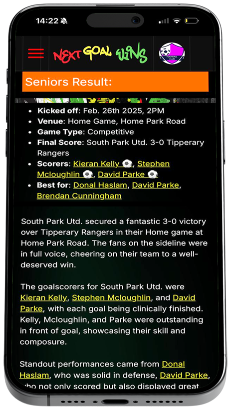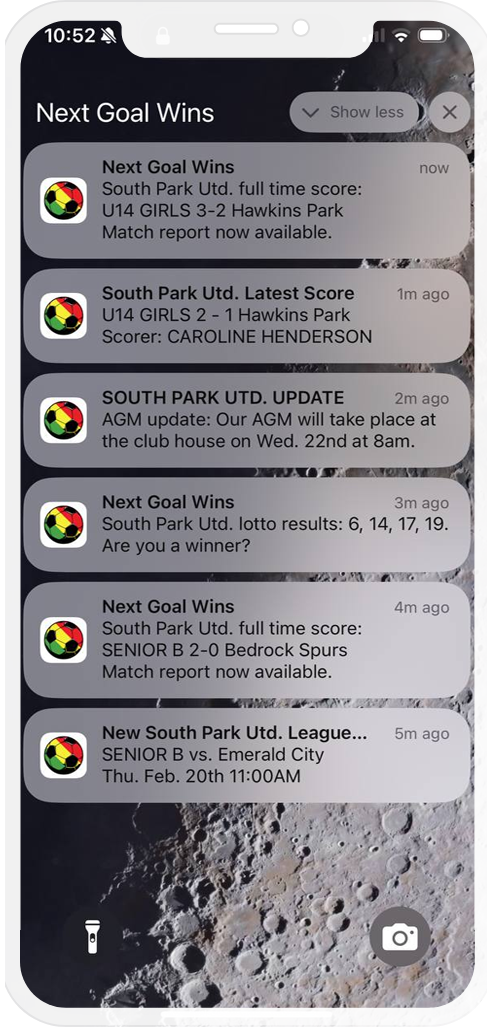 Next Goal Wins offers many benefits for your club. Players are empowered because their performances are showcased to a wider club audience. Communications are dramatically improved through unlimited, focused push notifications. Supporters are more engaged as they gain access to a variety of club content such as player performance data, fantasy football using club players, match reports, live commentary, and more.
